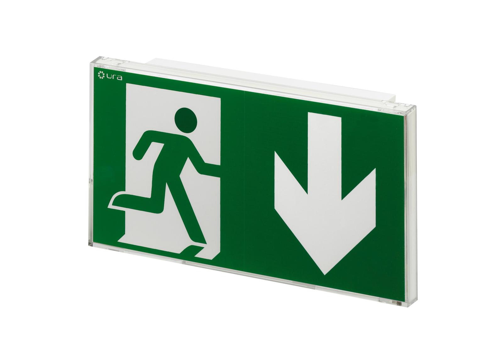 Un Design parfaitement intégré, réduit à sa simple fonction avec un pictogramme d'évacuation lumineux sans bordure éclairé uniformément