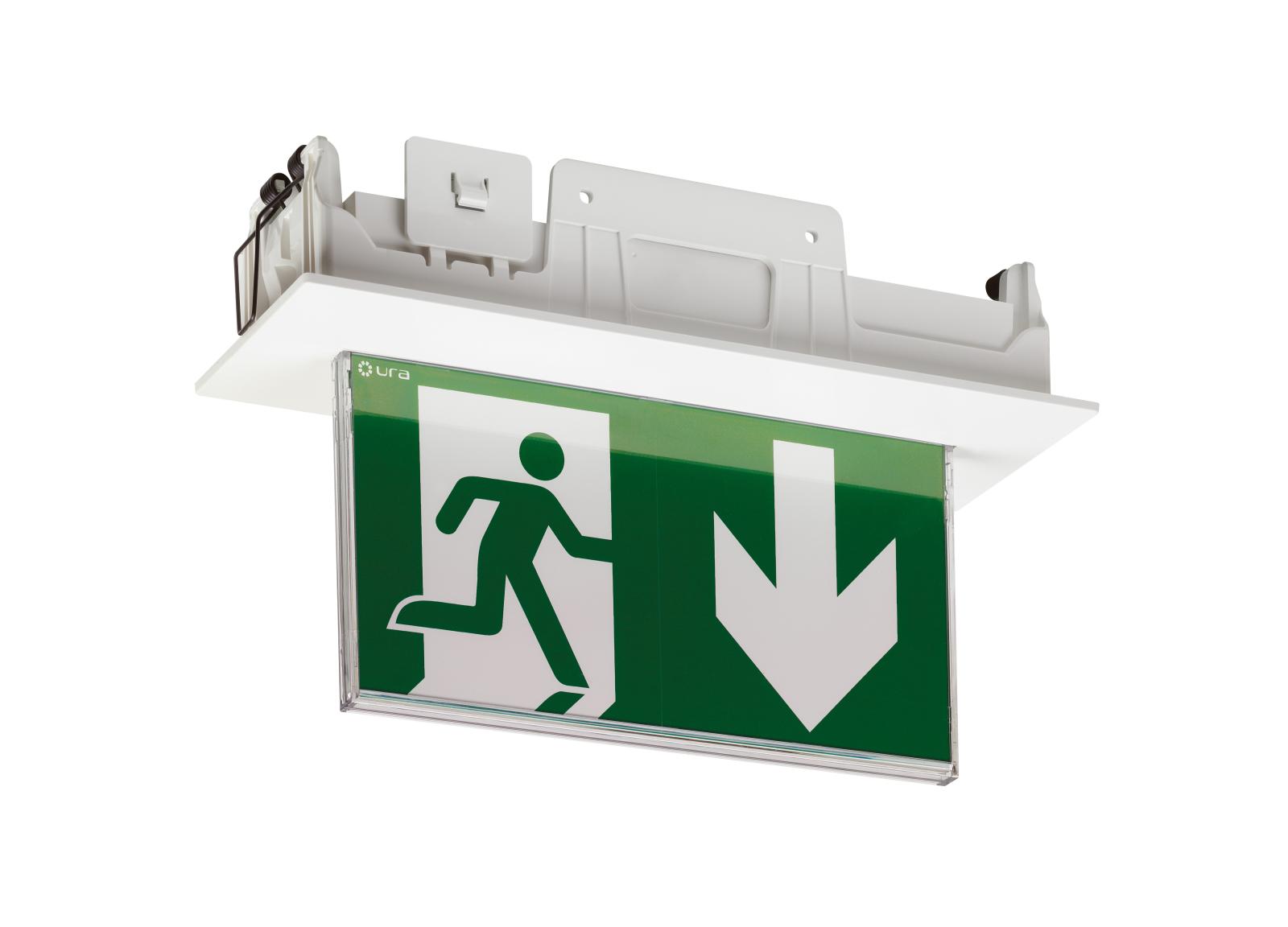 - LSC Uralife V Évacuation 48-110-220VDC/230VAC - 45lm - pose plafond encastrée/saillie - IP43/IK07 - éclairage uniforme du pictogramme